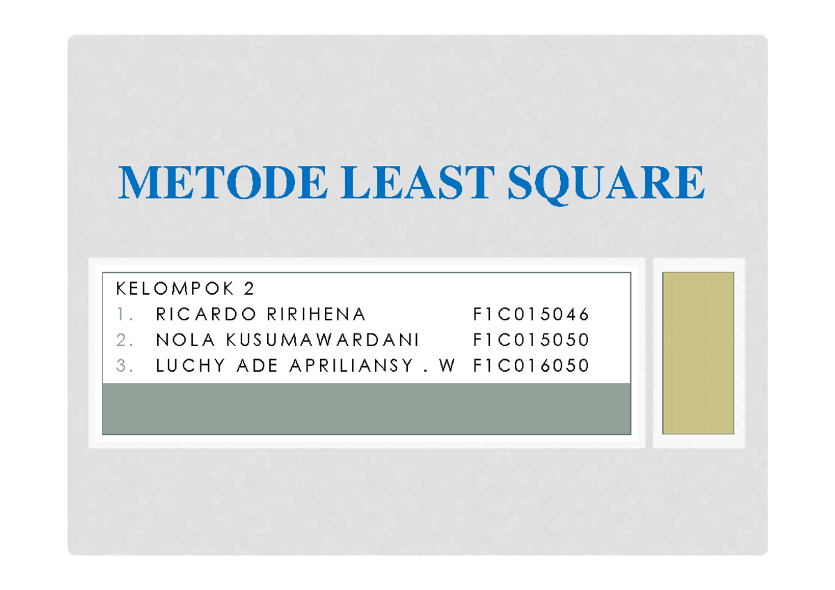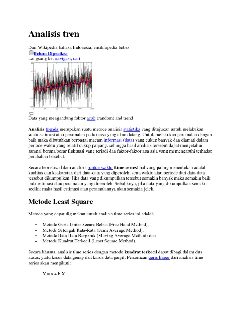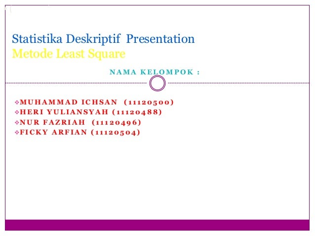 Metode least square juga termasuk salah satu metode yang paling luas digunakan untuk menentukan persamaan tren data karena metode ini menghasilkan apa yang secara matematika digambarkan sebagai line of best fit (handoko, 2000). Metode least square metode least square adalah suatu metode yang paling luas digunakan untuk menentukan persamaan trend data. Statistika deskriptif metode least square. Analisis trend (materi x : Makalah analisis deret berkalah dengan metode least aquare.