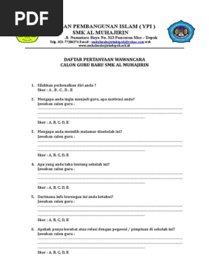 Maybe you would like to learn more about one of these? Pertanyaan dan jawaban interview calon guru. We did not find results for: Check spelling or type a new query.