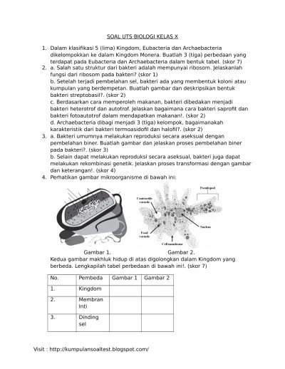 Contoh soal ujian biologi kelas 10 semester 1 petunjuk teknis!